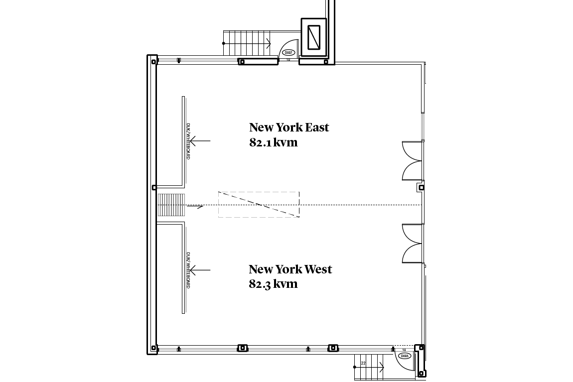 Konferenslokalen New York är vår största lokal på 164 m². Lokalen går även att dela av till New York West och New York East. Lokalens rektangulära form skapar en känsla av närhet och engagemang då deltagare och föreläsare inte har så långt avstånd mellan varandra. Alla deltagare har god sikt fram till de två projektordukarna. Stora fönster på båda sidorna gör lokalen ljus och trevlig.