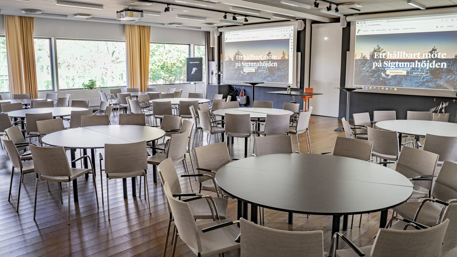 - Två Epsonprojektorer med duk. Båda dukarna kan visa samma bild från en dator eller två separata datorer kan projicera på var sin duk samtidigt.